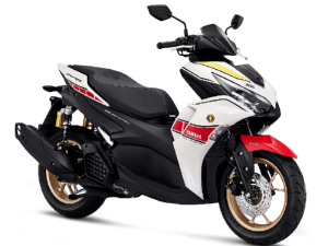 Warna putih dengan garis merah yang berada di sisi kanan dan kiri badan motor menambah kesan Yamah Aerox 155 ini makin gagah dan sporty. Di garis merahnya terdapat grafis “Speed Block” yang menjadi simbol dan identitas dari Yamaha Racing Team.